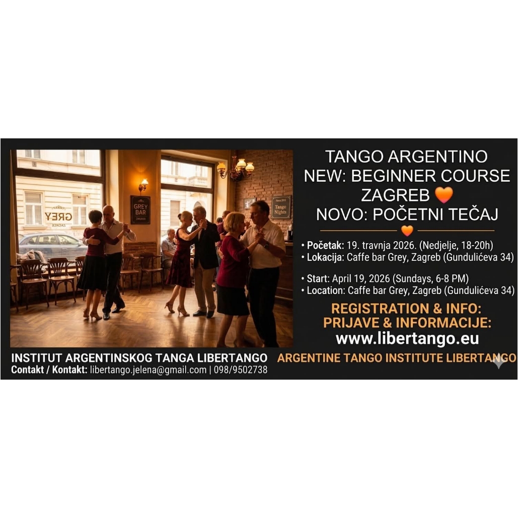 Looking for a new hobby, a way to relax, or do you simply want to learn the most emotional dance in the world? Join us for a new Argentine Tango course for beginners in the heart of Zagreb.